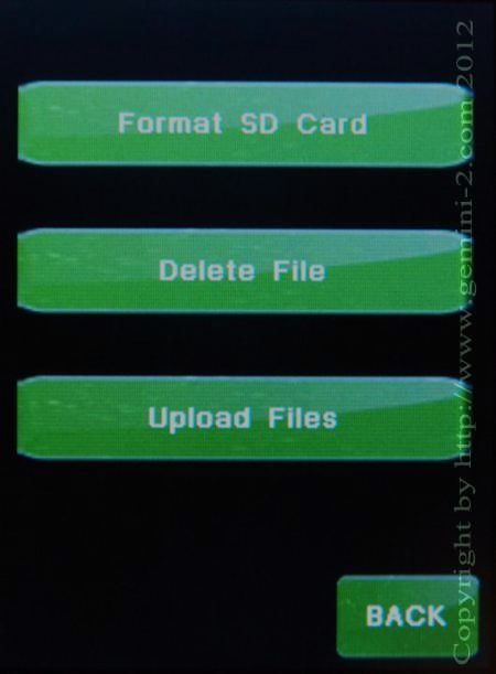 This menu will let you format the micro-SDcard in the hand-controller, Delete files